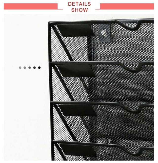 | 【収納力抜群】6段の間仕切り設計されたファイルホルダーは雑誌、ノート、新聞、辞書、付箋、文具などの収納整理にぴったりです!下のトレイは小物の置くことに便利です。 【効率アップ】仕切りがありますので、ファイルを分かりやすく分類し、検索にもより高効率で快適になります。 【高品質素材】エコの金属材料を作れた書類ホルダーは耐久性よく、底が滑り止めのデザインがあり、堅牢性が高く、長時間使えます。 【メッシュデザイン】網状設計なので出したい物を気軽に見つけます。空デザインは風通しがよく乾燥しているため、ほこりがたまりにくいです。 【両用設計】背面に2つの丸い穴があり、壁に取り付けることも、テーブルに別々に配置することもできます。書類収納とファイル収納が抜群で、省スペースが可能です。 | |