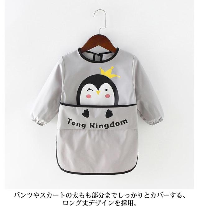 スモック ロング丈 お食事エプロン 長袖スモック 防水 汚れ防止 ポケット付き 食べこぼし防止 ロング キッズ 男の子 女の子 子供 子ども 保育園 幼稚園 外遊び オールシーズン 入園グッズ 入園準備 可愛い アニマル柄 全6柄