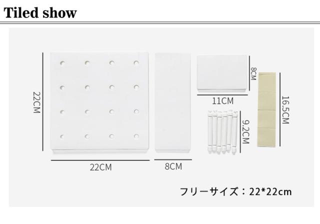 | 壁に設置して机上収納に活用しても便利な有孔ボードです。 用途に合わせてカスタマイズできる自由度の高さが最大の特長です。 専用の工具などは一切不要で、好きなところに粘着シートを貼り付けだけで。 有孔ボードはPP材質なので、お手入れする場合は水洗いするのは良いです。 玄関、リビング 、浴室、キッチン、仕事部屋と、幅広くご利用いただけます。 | |