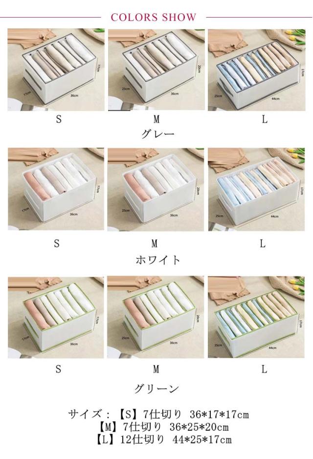 収納ケース 衣類収納 ボックス tシャツ収納 パンツ収納 仕切り タイツ収納 ハイソックス収納 タンス収納 収納ボックス ズボン収納ケース 便利 きれい 折り畳み 7仕切り 7ポケット 12ポケット 3色 3サイズ 収納ボックス 収納 ジーンズ 整理整頓 無地