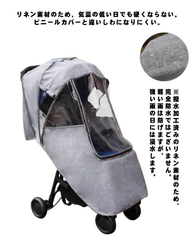 | リネンがおしゃれなカバーです。 すっぽりタイプなので、シェードタイプに比べ直射日光や紫外線からお子様を守ります。 メッシュ通気口で蒸れを防止。ホコリや虫除けとしても効果抜群です リネン素材のため、気温の低い日でも硬くならない。 ビニールカバーと違いしわになりにくい。 調整可能なベルト付きで密閉度を高められるので、より花粉やウイルスやホコリなどの対策ができる。 収納ポケット付きなのでベビーカー用バッグとしても便利。 ※撥水加工済みのリネン素材のため、完全防水ではございません。 軽い雨は防げますが、強い雨の日には浸水します。 ほとんどのベビーカーに対応!前面ファスナーで大きく開く窓から、赤ちゃんを乗せる時降ろす時も着脱不要で楽々。 | |