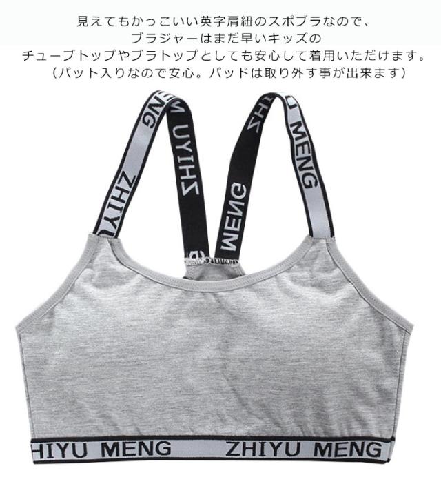 | 小学生高学年〜中学生向け女の子用下着。 スポーツブラとパンツの上下2点セットです。 綿(コットン)素材で気持ちいい肌触り。 修学旅行・水泳・スイミング・部活・体育やお泊り会におすすめのジュニア向けアウターセット。 シンプルでおしゃれな人気の英字ロゴテープデザインがポイント。 使いやすくて安い定番カラーをご用意。 伸縮性のあるノンストレスな着心地。体にピッタリフィットして揺れないブラトップなのでダンス衣装のインナーとしても大活躍! 見えてもかっこいい英字肩紐のスポブラなので、ブラジャーはまだ早いキッズのチューブトップやブラトップとしても安心して着用いただけます。 (パット入りなので安心。パッドは取り外す事が出来ます) | |