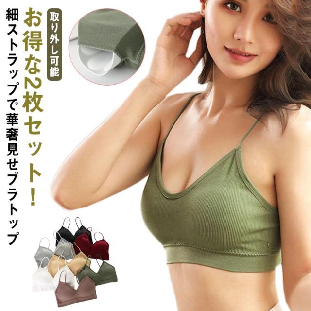 2枚セット ブラジャー ノンワイヤー フルカップブラ シャツブラ ヨガブラ スポブラ 下着 ナイトブラ インナー フィットネス レディース カップ付き キャミソール カップ付き 取り外し可能 ホワイト グレー グリーン ブラック パープル 肌色 ワインレット