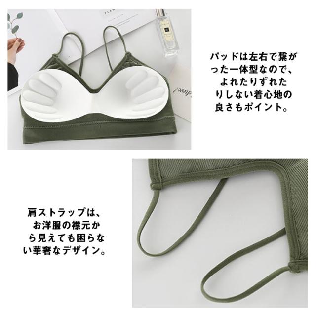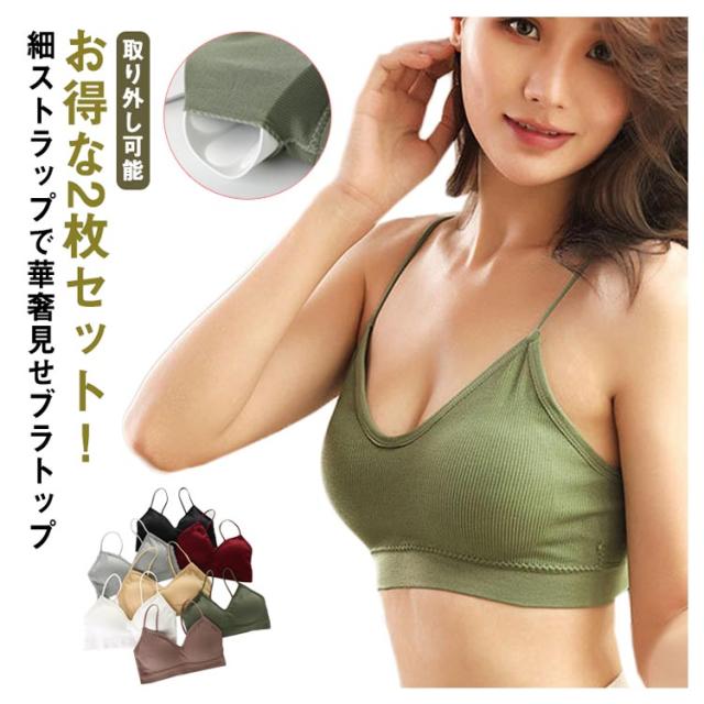 | お得な2枚セット! 細ストラップで華奢見せブラトップ お部屋着にもぴったり♪ノンワイヤーでスポーティに着られる リブ編み&ストレッチ性に優れた素材使いで、しっかりとお胸をホールド 厚みのあるパット内蔵で、気になるボリュームもアップしてくれる♪ パッドは左右で繋がった一体型なので、よれたりずれたりしない着心地の良さもポイント。 肩ストラップは、お洋服の襟元から見えても困らない華奢なデザイン。 とっても伸縮するので、ぴったりとフィットしてズレ落ちにくいのも嬉しい。 ニュアンスのあるカラーバリエーションで重ね着にも◎ | |