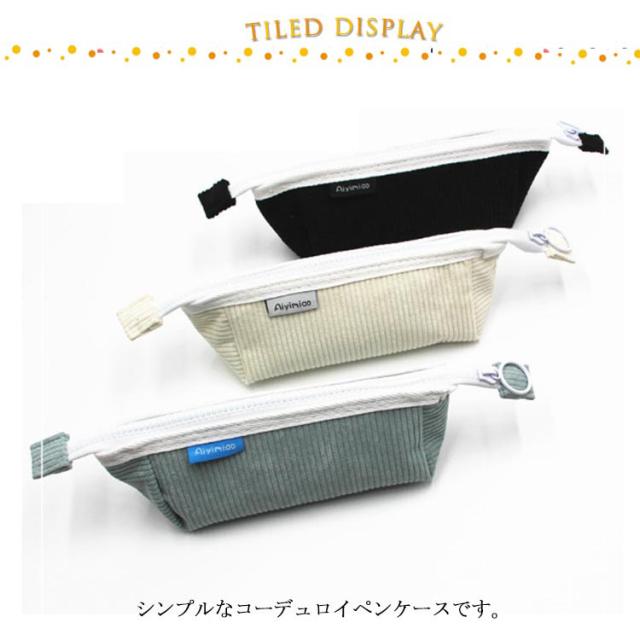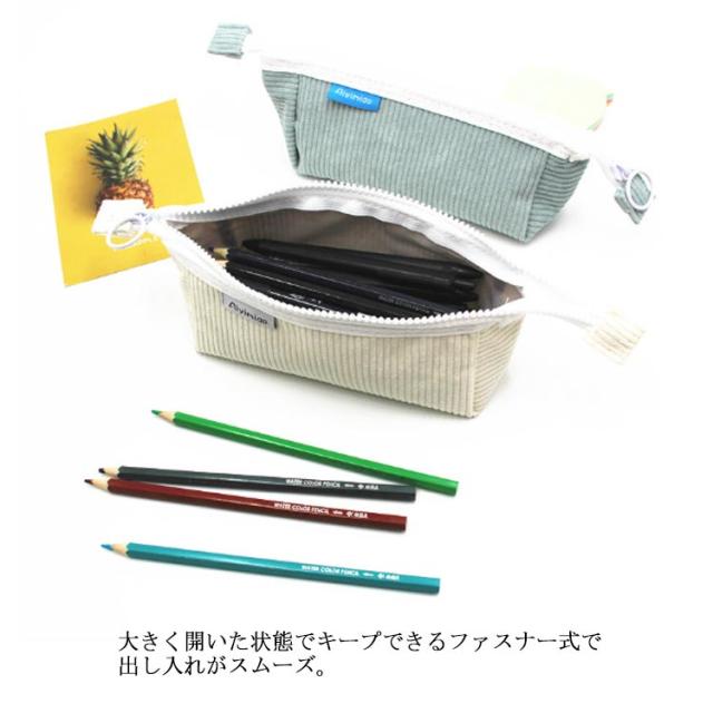 | シンプルなコーデュロイペンケースです。 大きく開いた状態でキープできるファスナー式で出し入れがスムーズ。 男女性別メンズレディース問わず使えるシンプルなコーデュロイ素材がおしゃれ! ペンなどの文房具やメイクブラシなど収納できます。 | |