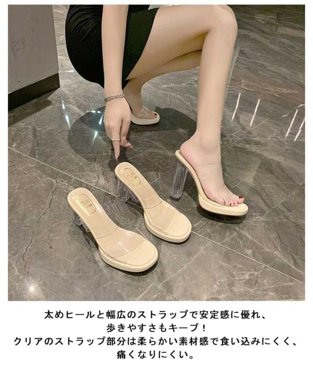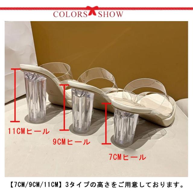クリアヒール ミュール サンダル 7cm 9cm 11cm ヒール クリアサンダル クリアミュール チャンキーヒール スクエアトゥ ダブルベルト ミュールサンダル クリア 透明 大人可愛い ハイヒール レディース 靴 歩きやすい キャバ ドレス用 パーティー 美脚