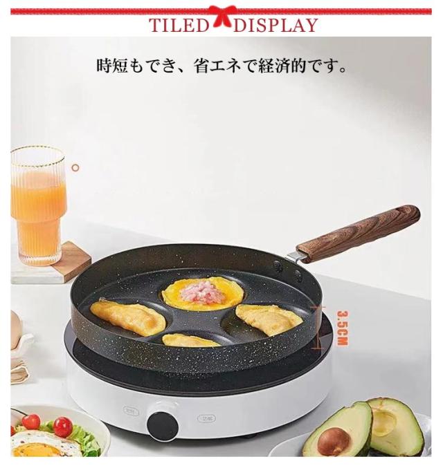 | 朝の忙しい時間に、同時に4つのおかずが作れ、洗う手間も1回で済みます★ 時短もでき、省エネで経済的です。 特殊コーティングにより、焦げつきにくく快適に料理できます。 IH、ガス火、セラミック、ハロゲンコンロ等オール熱源対応です。 お手入れが簡単で、タオルで拭いて、または水ですすいできれいになることができます。 | |