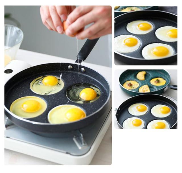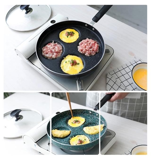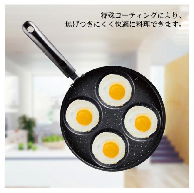 目玉焼きフライパン 仕切り付き 4つ穴円形フライパン IH対応 マルチパン 仕切り フライパン 鉄 お弁当 フライパン 弁当 作り キャラ弁 型 丸い 朝食 エッグパン 卵焼き器 時短 簡単 電磁調理器 ガス対応 卵焼きフライパン
