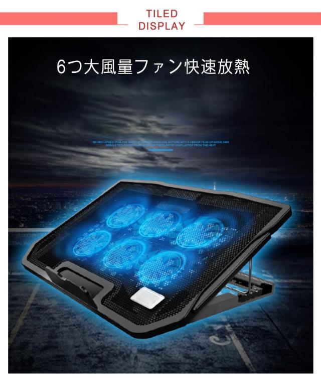 冷却ファン ノートパソコン スタンド ノートパソコンクーラー 冷却パッド 6つファン 折りたたみ 軽量 静音 滑り止め付き 3段階角度調整可 2つUSBポート付 オフィス 在宅勤務 出張