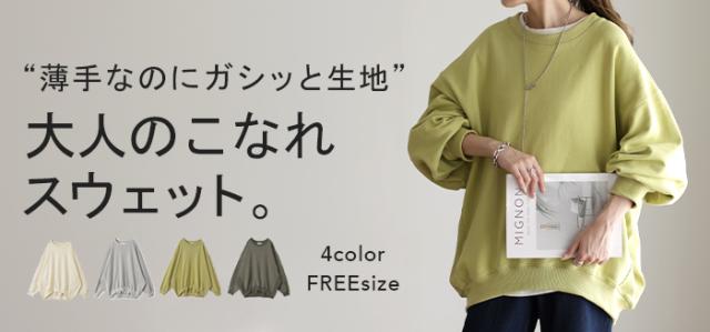 大人の女性らしく仕立てたぽわん袖スウェットトップスです。