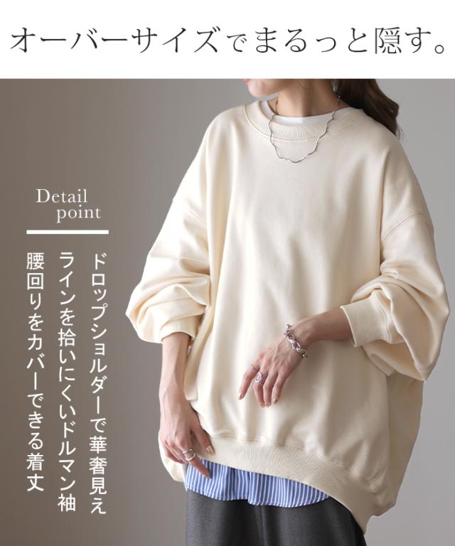 超オーバー「 ゆったり。」 スウェット レディース トレーナー トップス 体型カバー チュニック 大きいサイズ 無地 ドルマンスリーブ スエット プルオーバー ビッグ ロング ドロップショルダー ビッグシルエット ゆる ぽわん袖 長袖 白 冬 秋 HUG.U 秋新作