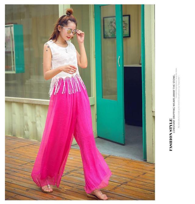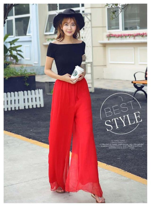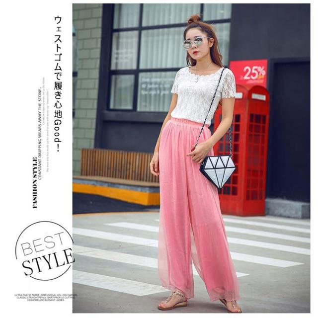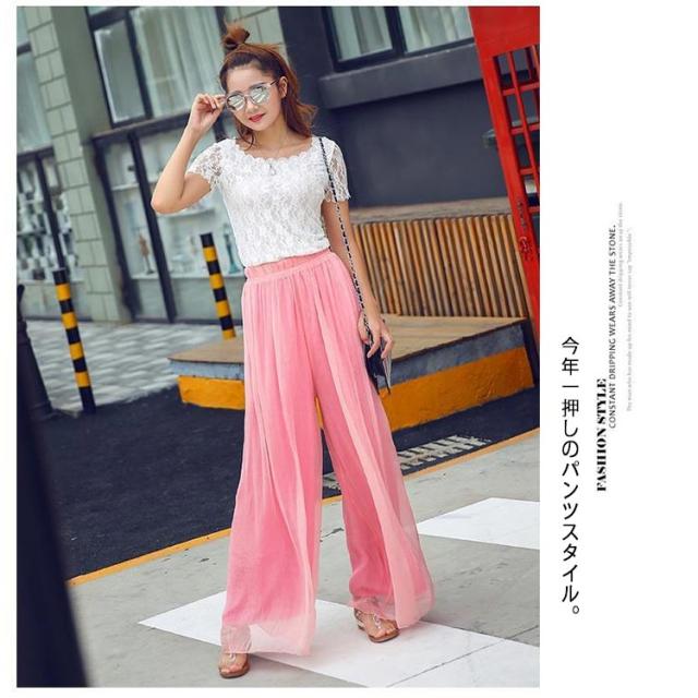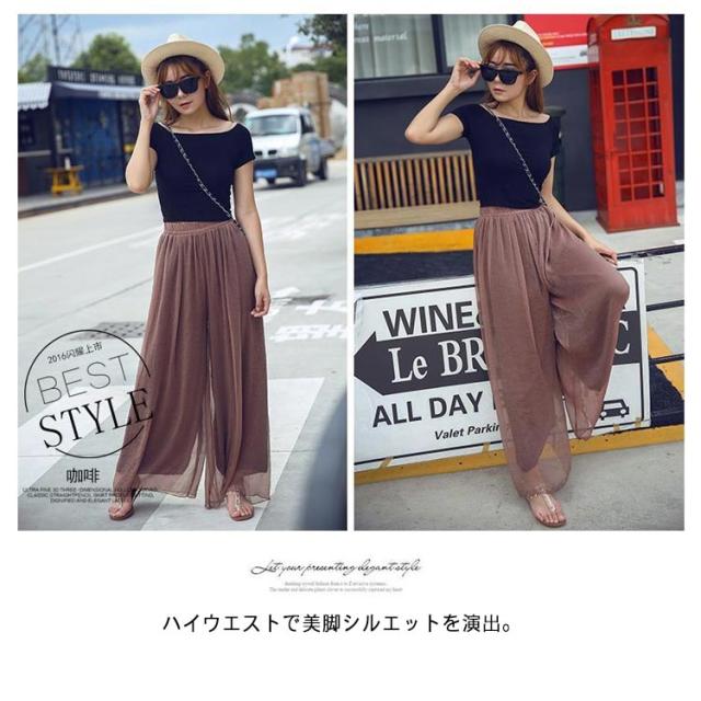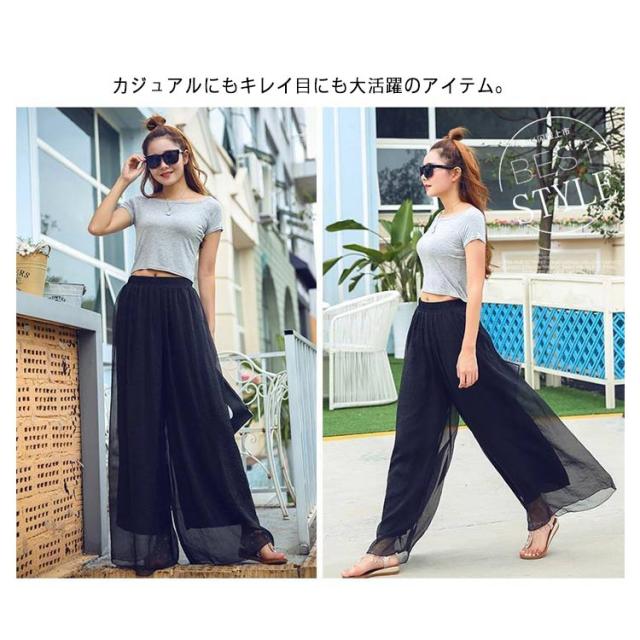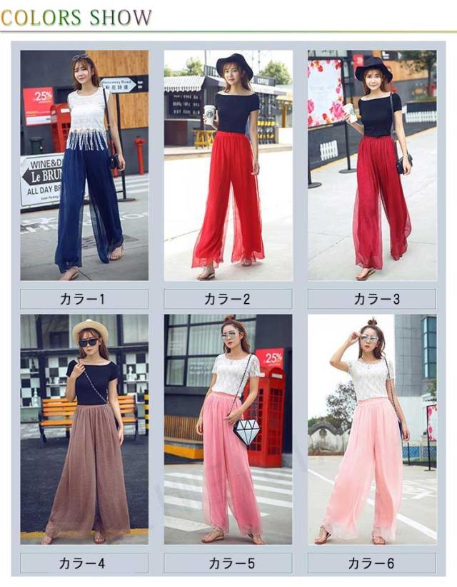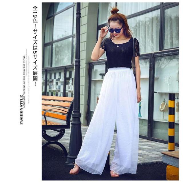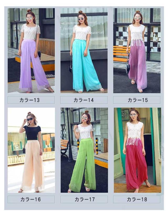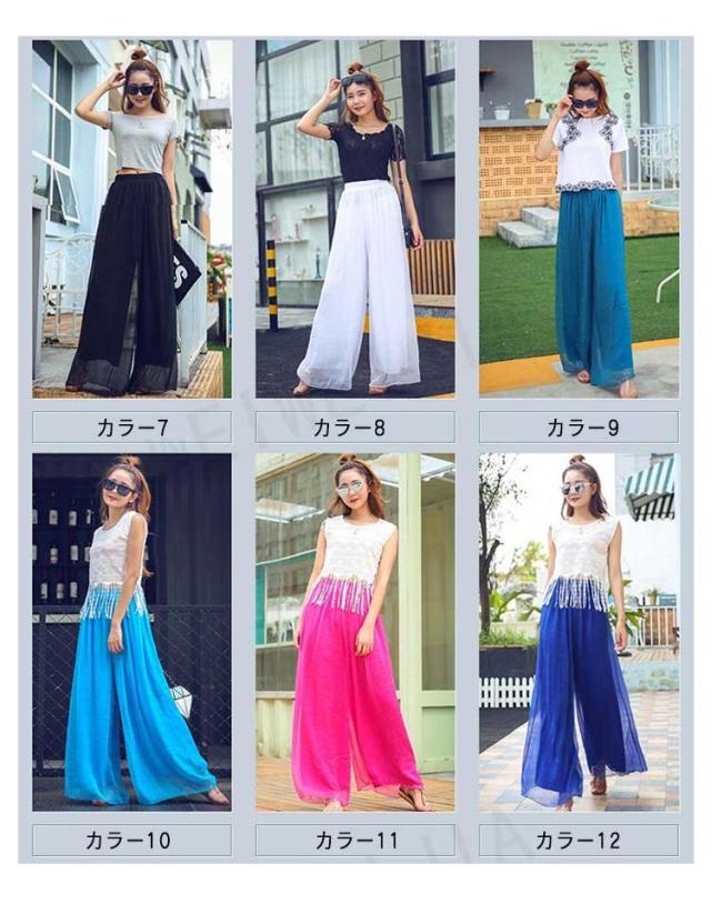 全19色 ワイドパンツ レディース シフォンパンツ ガウチョパンツ スカーチョ パンツ ボトムス ズボン きれいめ ダンス衣装 大きいサイズ ウエストゴム 透け感 体型カバー S M L XL 2XL