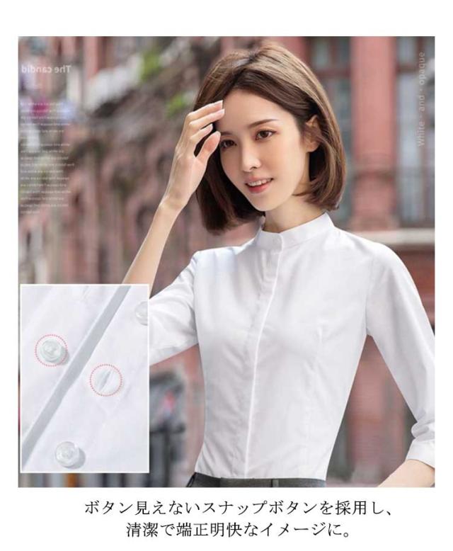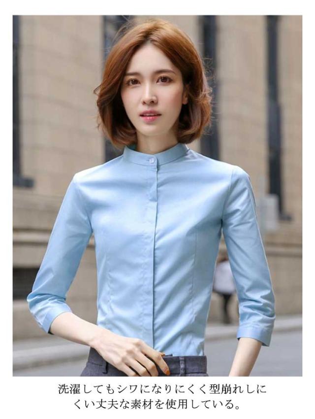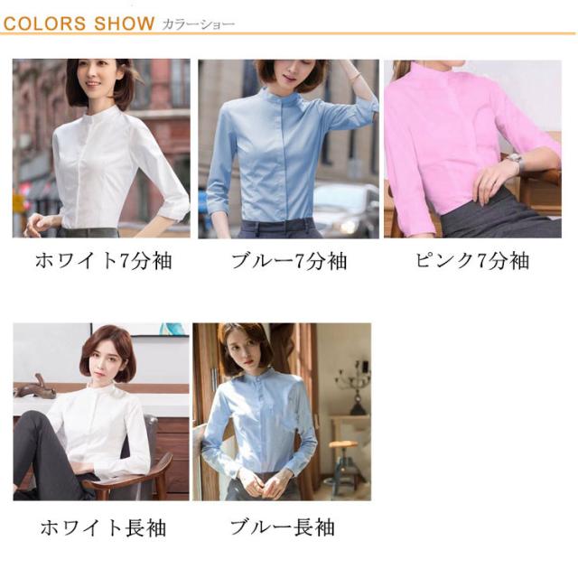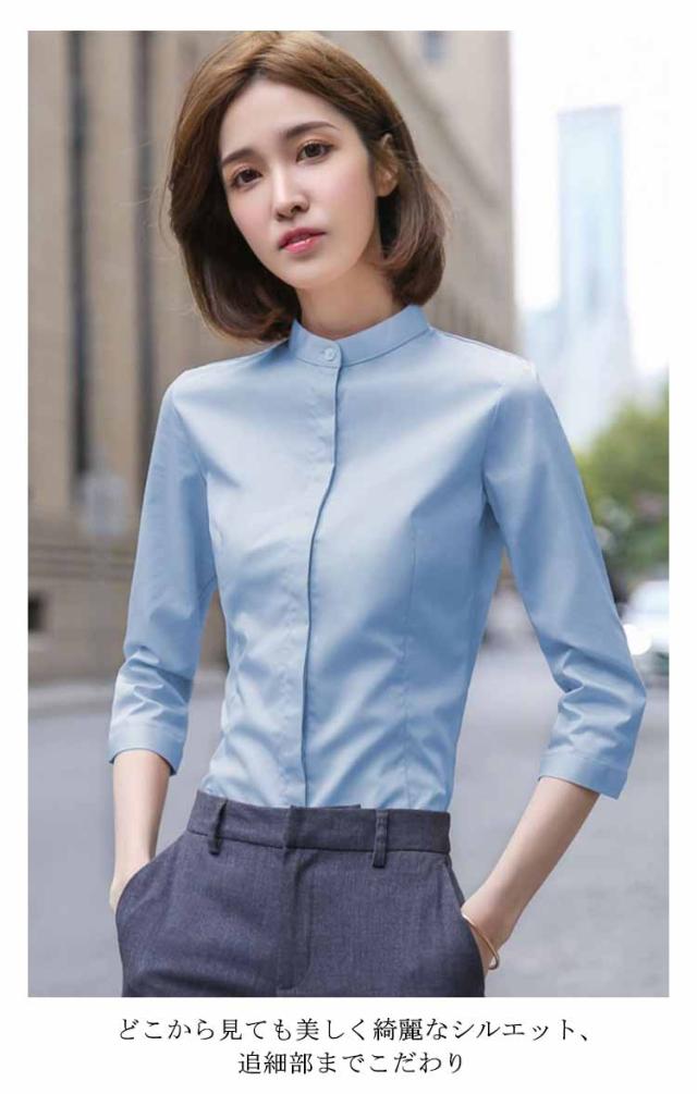 ワイシャツ レディース 立ち襟シャツ 送料無料 長袖 七分袖 シャツ スタンドカラーシャツ 七分袖シャツ 長袖シャツ フォーマルシャツ スーツシャツ 無地 シャツ ブラウス 通勤 オフィス ビジネス フォーマル 面接 就職 仕事着 着痩せ 大きサイズ 春 夏 秋 送料無料