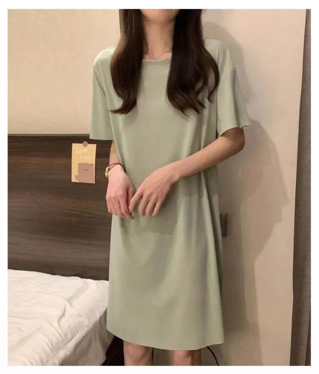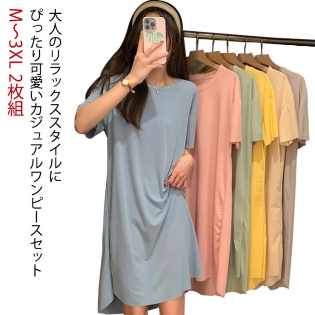 ルームワンピース 半袖 ルームウェア パジャマ 2枚組 ゆったり 体型カバー 薄手 涼しい 部屋着 無地 可愛い 女性 レディース 夏用 春夏秋 大きいサイズ セットアップ ストレッチ性 軽量 快適 寝間着 ギフト プレゼント 送料無料