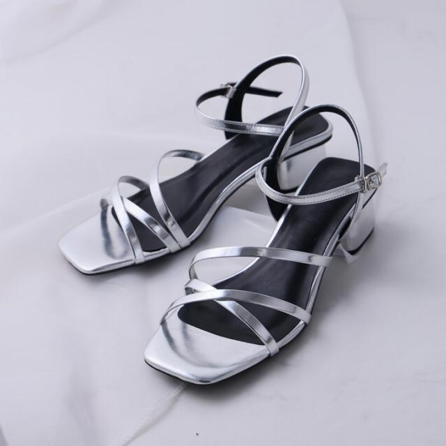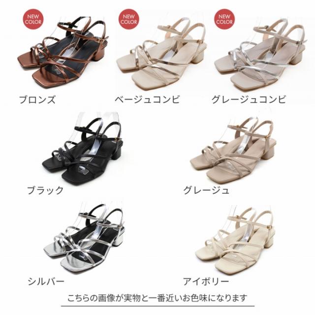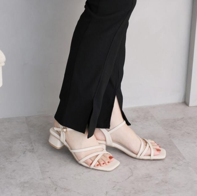 スクエアトゥアシメ華奢アンクルストラップサンダル
