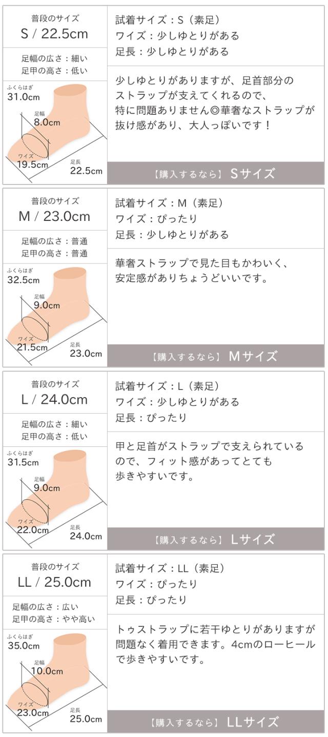 | サイズ (対応サイズ) | 長さ | ワイズ | 幅 | ヒール高さ |