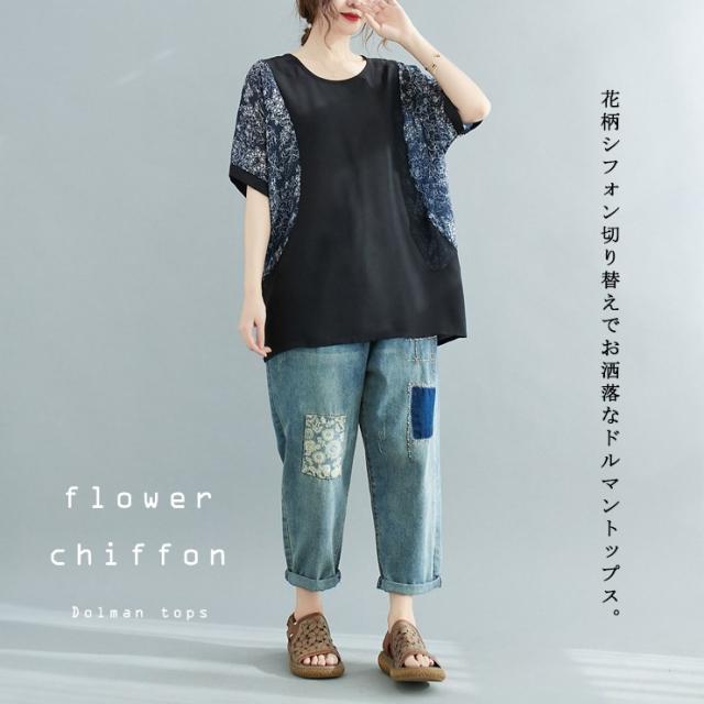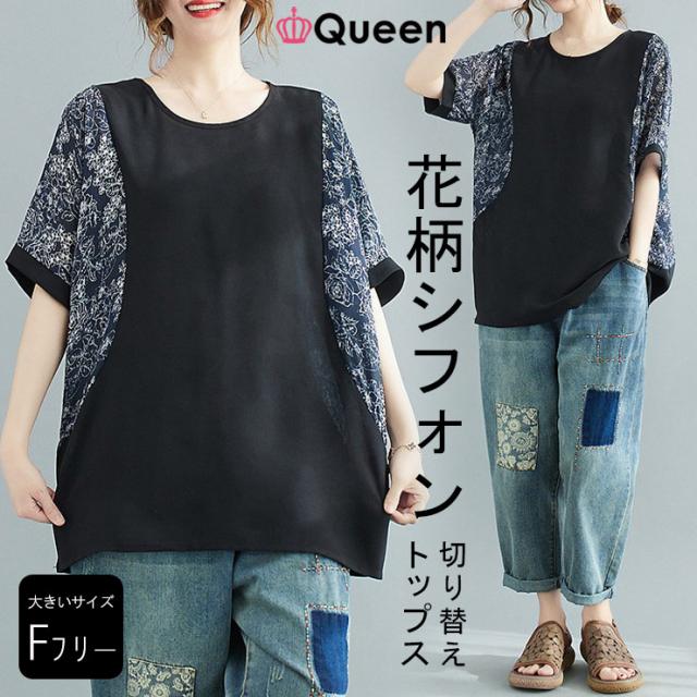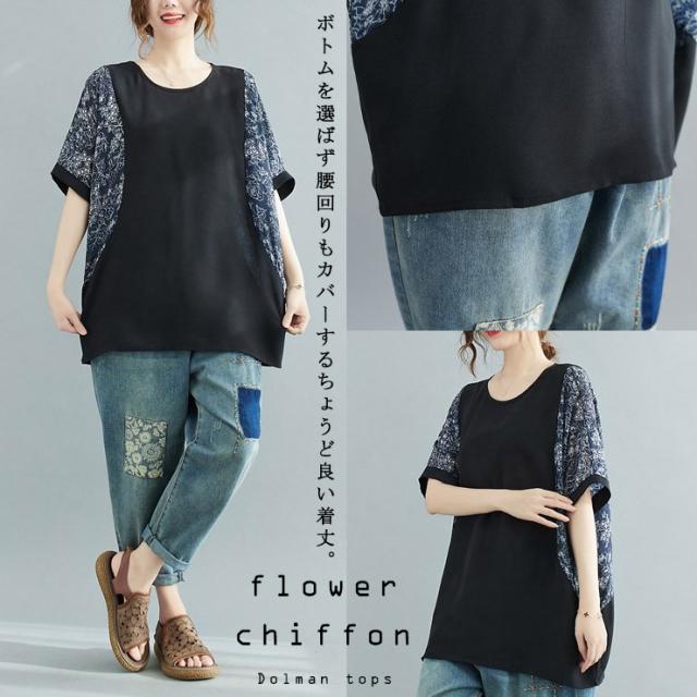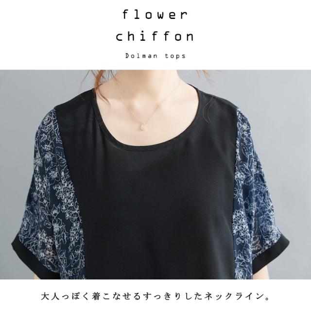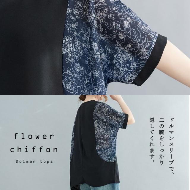 大きいサイズ レディース シアートップス ドルマン オーバーサイズ 切り替え 花柄 夏 (6011740)