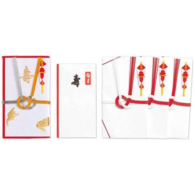◆赤白7本あわじ結びで斜折タイプの金封3枚と金包みがセットになっています。
