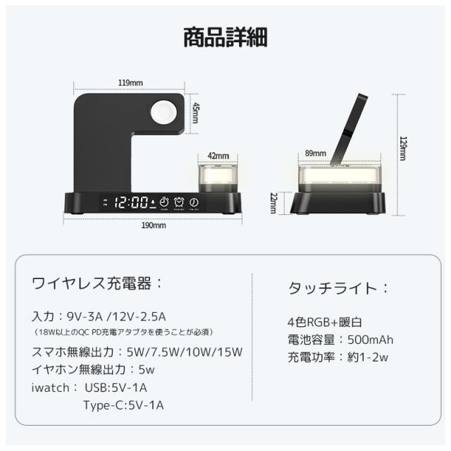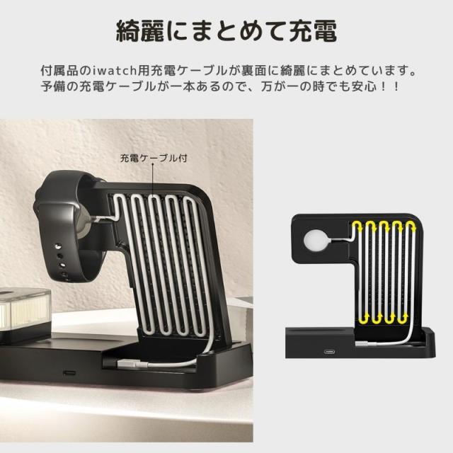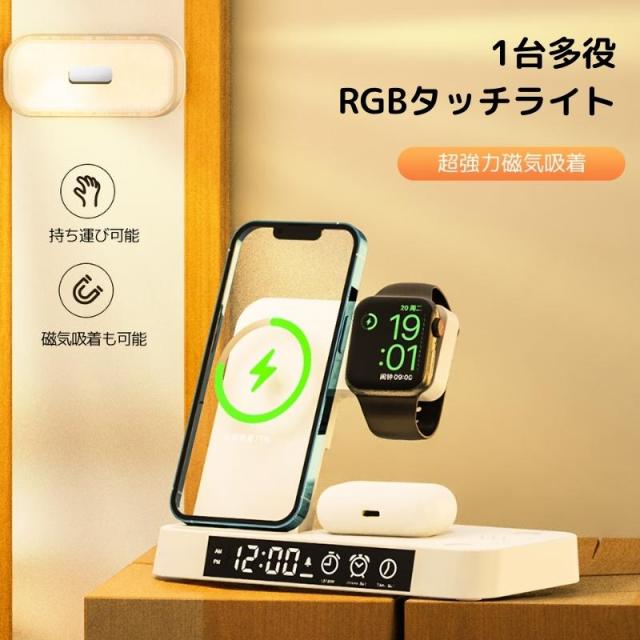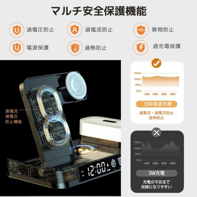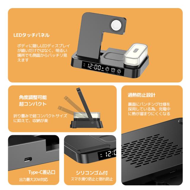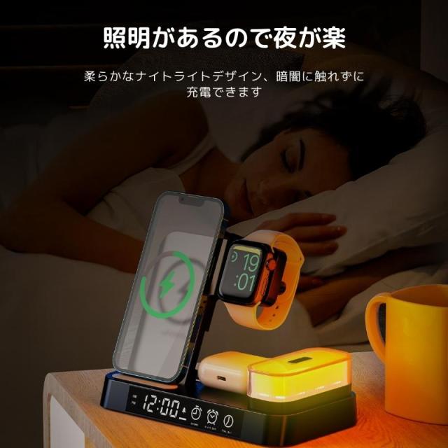無線充電 airpods pro airpods 多機能 充電器 アップルペンシル 充電器 qi 充電器 置き時計 コンパクト 置くだけ おしゃれ type-c