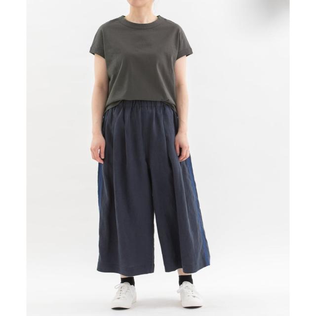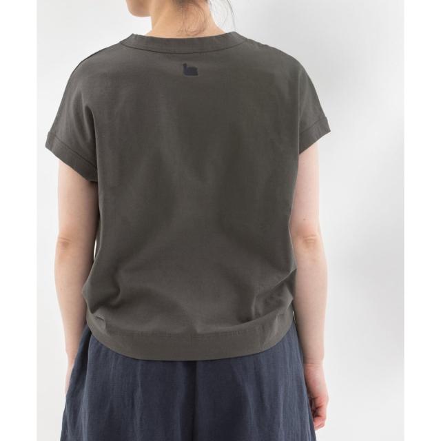 「よれない」「透けない」「長持ちする」良質なUSコットン(32/2天竺)で仕立てたほどよく肩が隠れるフレンチスリーブTシャツ。女性らしいフレンチスリーブを太バインダーでメンズライクに仕立てたシンプルな定番。ヴィンテージやミリタリーTシャツなどに採用されているバインダー襟仕様で太めの襟幅がデザインポイント。バインダー襟は身頃を包み込むように縫製しており強度がアップします。反面、伸縮性が損なわれるため、着用や洗濯を繰り返すたびにねじれなどが起きることもあり、それがかえって風合いが増すと考えているタフな襟ぐりとなっています。リピーターも多く今年は明るい差し色を追加しています。後ろネック下にトレードマークのスワン刺繍あり。原料高騰の為、止むを得ず品番が変更になっています。オリジナルクリアパックパッケージ仕様。