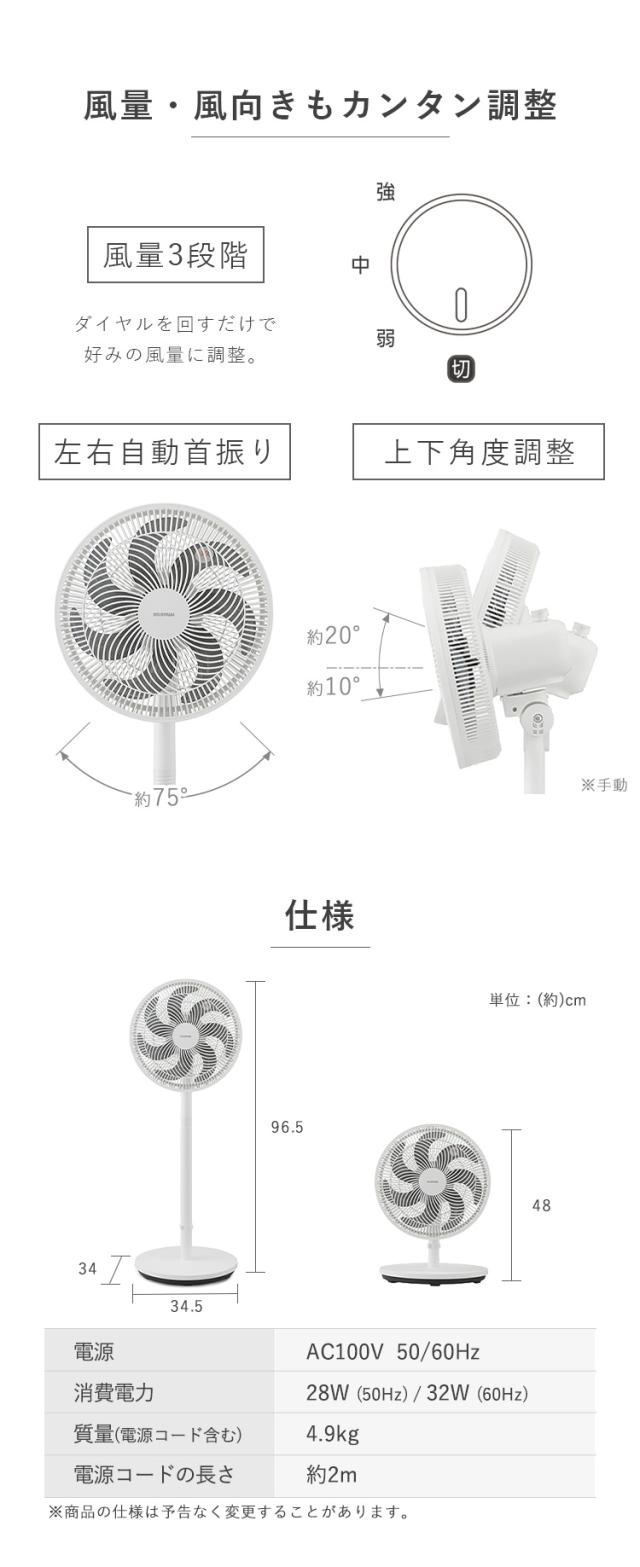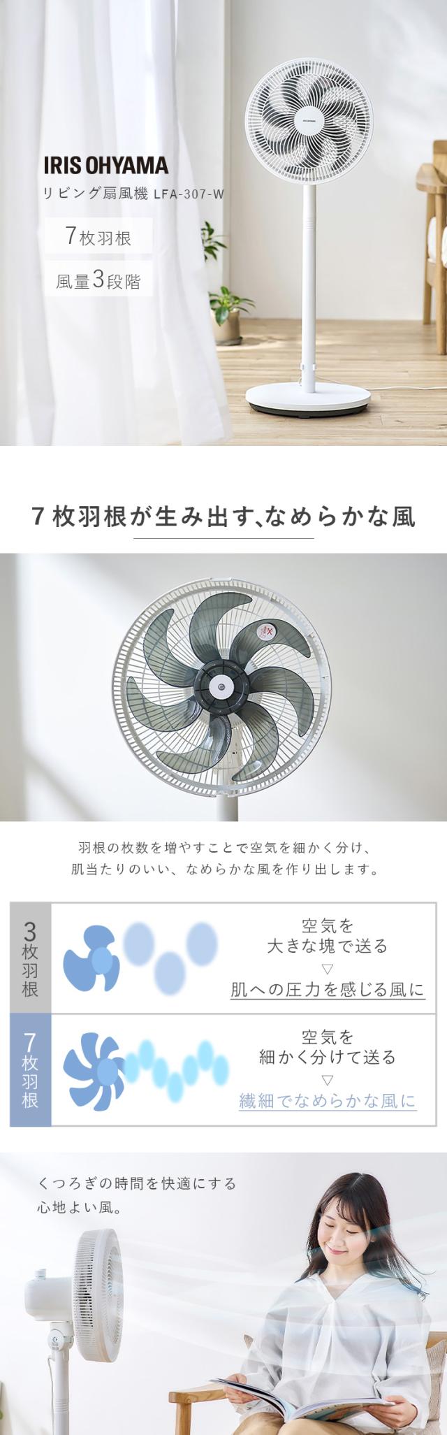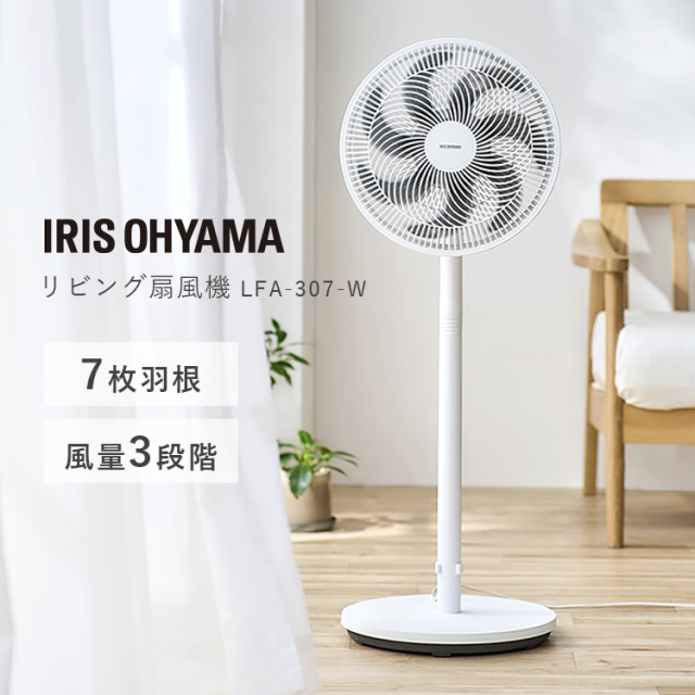 扇風機 静音 アイリスオーヤマ * LFA-307 高さ2段階調整 7枚羽根 風量3段階 左右自動首振り 上下角度調整 空気循環 遠くまで送風 立ったまま操作 ダイヤル式 操作簡単 熱中症対策 リビング扇風機 お手入れ簡単 夏 ACモーター