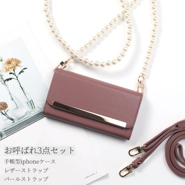 iphoneケースとレザーストラップ&パールストラップが付属しております。