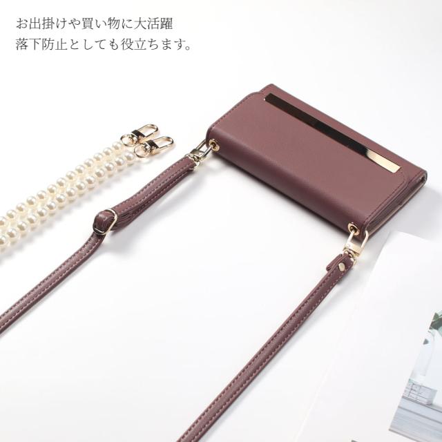 お呼ばれセット 手帳型 iphone ケース ショルダー ストラップ パール iphone14 13 pro 12 mini ミラー付き カード収納 レザー スマホショルダー SE 第3世代 第2世代 カバー 肩掛け 斜め掛け 11 8 大人かわいい 女性 アイフォン se2 se3 落下防止 スマホケース 14 送料無料