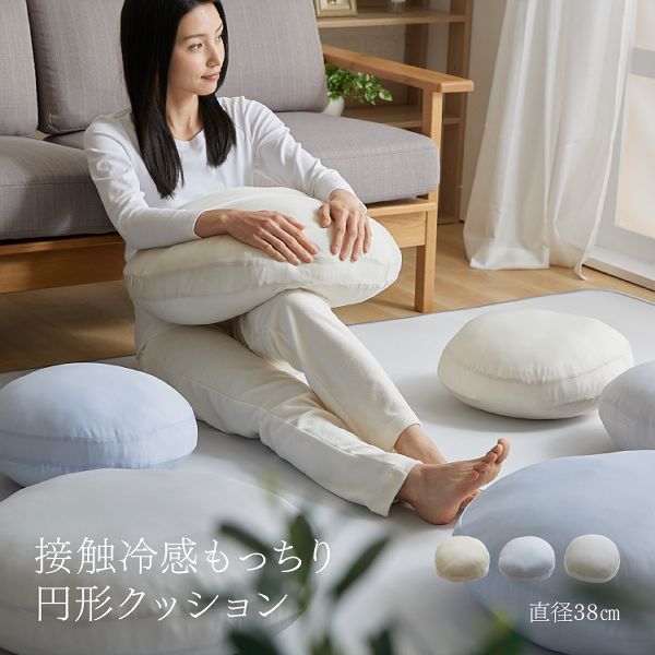 接触冷感モッチリ円形クッション Φ38cm 全3色 フロアクッション ひんやり ラウンド もちもち クール 座布団 まくら 抗菌・防臭 直径38cm お昼寝