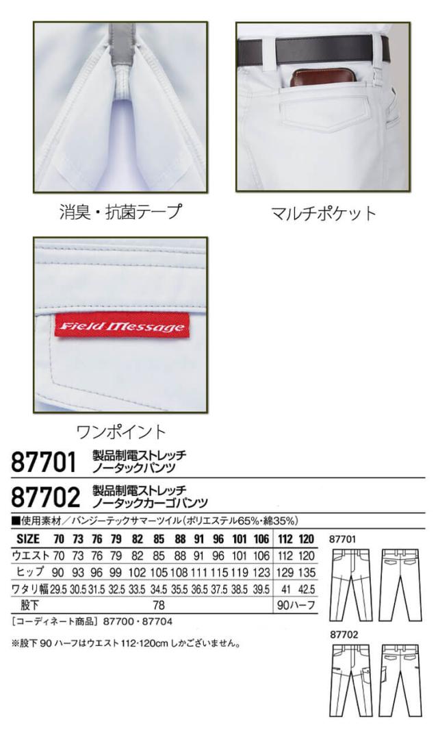 自重堂 Jichodo 製品制電ストレッチノータックカーゴパンツ 87702 70cm〜88cm