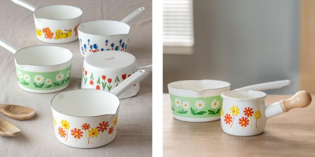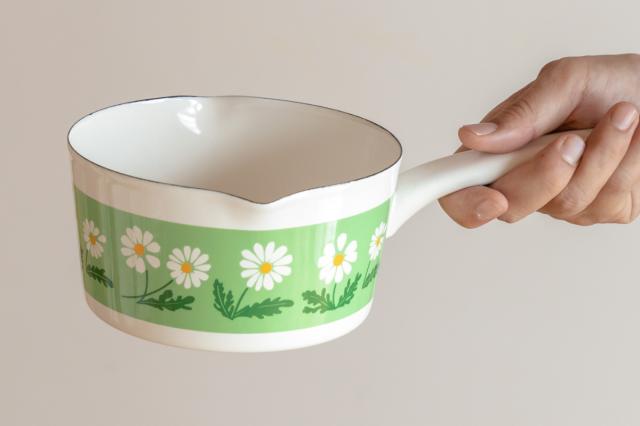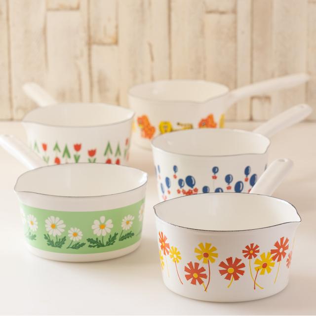 昭和レトロな柄がかわいい、ホーロー製のミルクパン