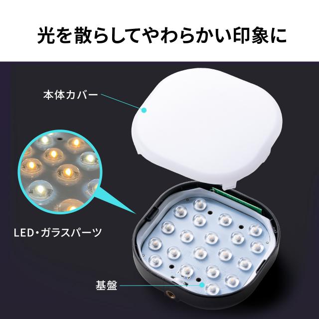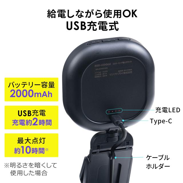 LEDライト 小型 充電式 ストリーミングライト モニター引っ掛け スタンド設置 最大240ルーメン LED20粒 色温度5段階[800-LED066]