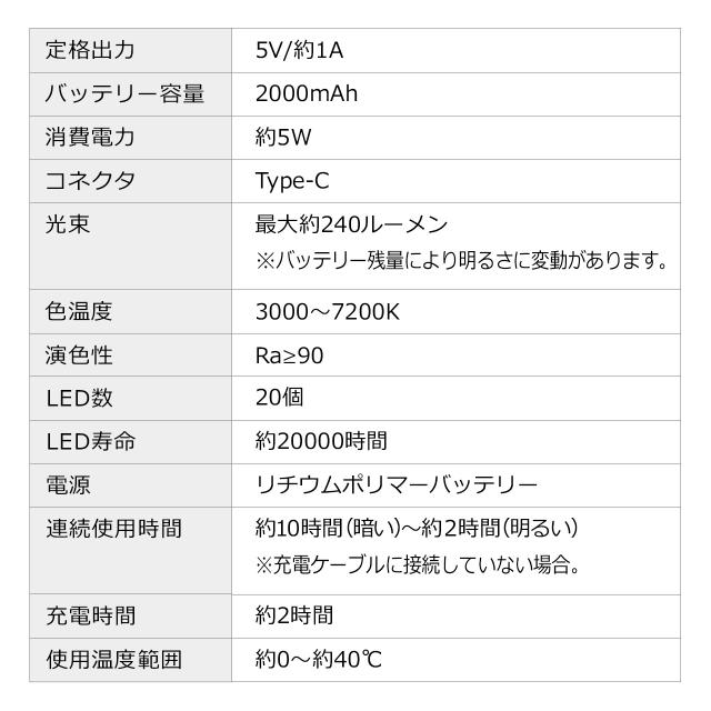 ■光束:最大約240ルーメン ※バッテリー残量により明るさに変動があります。
