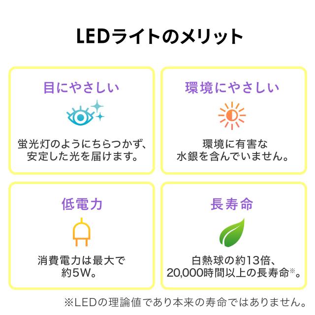●LEDの色は5色展開で。明るさも5段階で調節可能です。