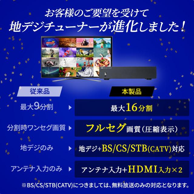 地デジチューナー 16分割 10分割 8分割 4分割 全画面 地デジ放送 BS/CS放送 STB CATV HDMI入力×2ポート[400-1SG008]
