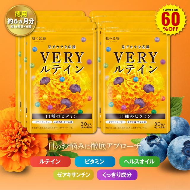 1袋単価比較で60%OFF!【徳用/約6ヵ月分】ルテイン+ブルーベリー+ビルベリー+11種類のビタミン(約1ヵ月分×6袋) サプリ サプリメント 亜麻仁油 エゴマ油 agesugi_sgu