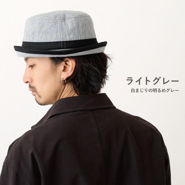 爽やかな風合いの霜降り調生地がオシャレなポークパイハット。