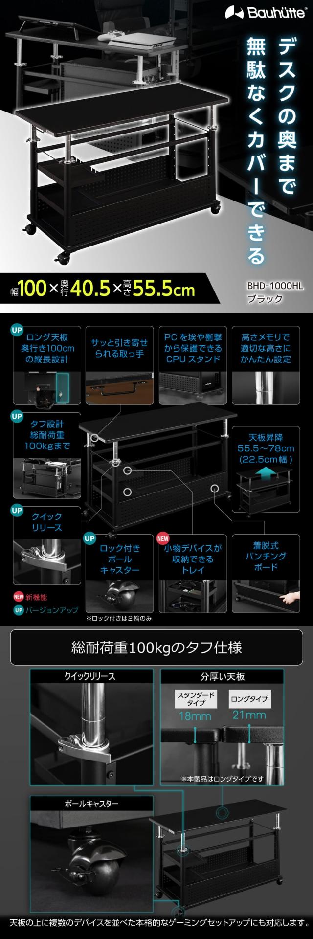 Bauhutte バウヒュッテ デスク BHD-1000HL-BK 昇降式L字デスクHD ロングタイプ 在宅 リモート メーカー直送 日時指定不可