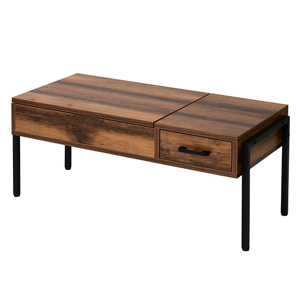 KKS-0025-BKBR 昇降式 リビングテーブル 幅94.5 引き出し ソファ テレワーク ナチュラル ヴィンテージ ホワイト JKプラン メーカー直送