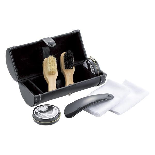 * セット内容:ブラシ(7.6×3×2.7cm)・起毛布地(20×20cm)・靴クリーム×各2、靴ベラ(11.5×4cm)・ケース(7.5×7.5×17cm)×各1