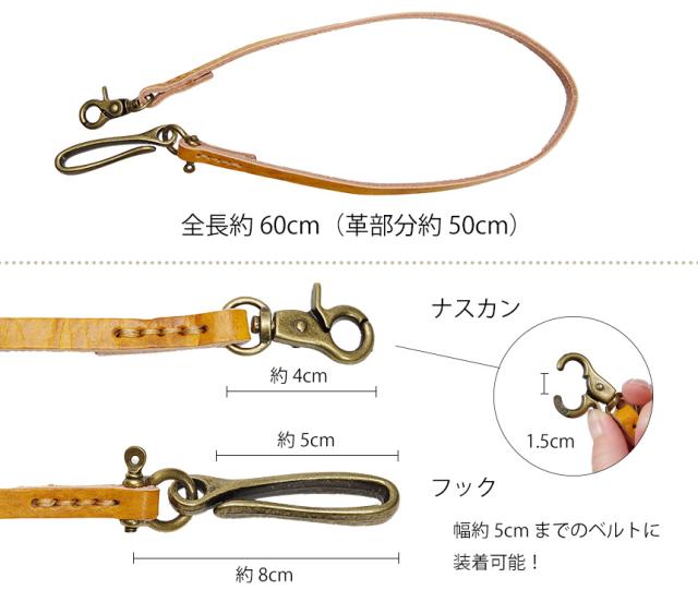ウォレットチェーン レザー 本革 シンプル ベルト 真鍮 おしゃれ 財布 ナスカン キーチェーン 鍵 キーホルダー ひも 紐 落下防止 ストラップ コード 長財布 60cm ファッション