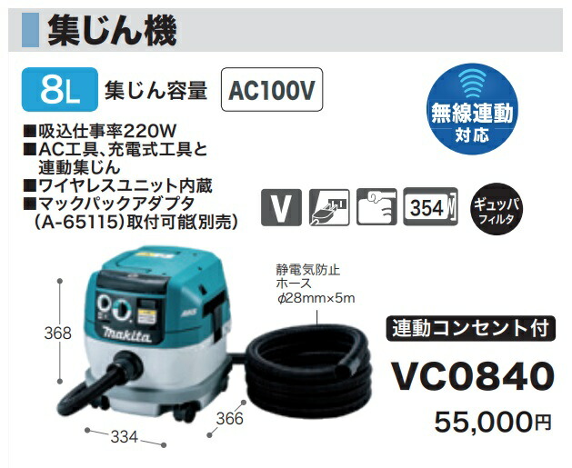☆ マキタ 集じん機 粉じん専用 電動工具接続専用 VC0840 ホースφ28mm×5m付 連動コンセント付 makita 大型商品