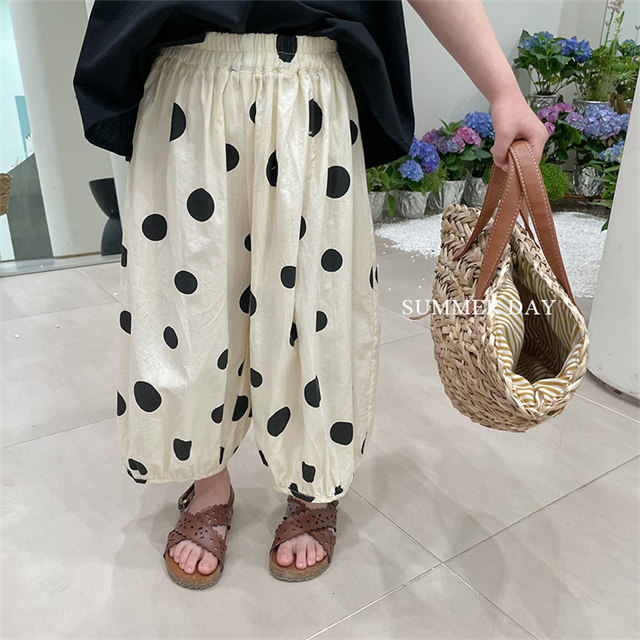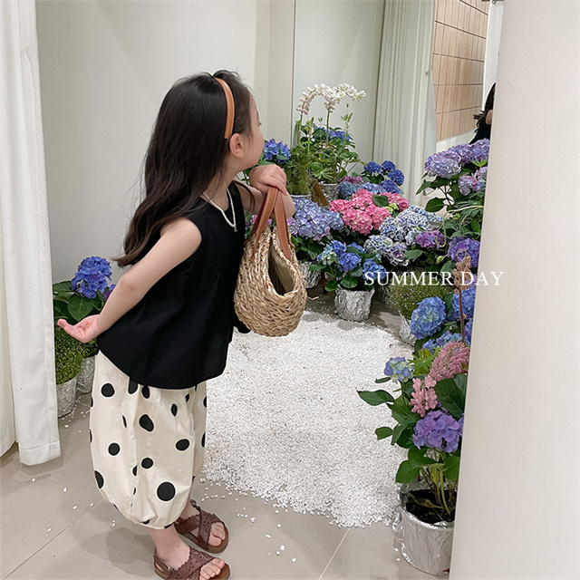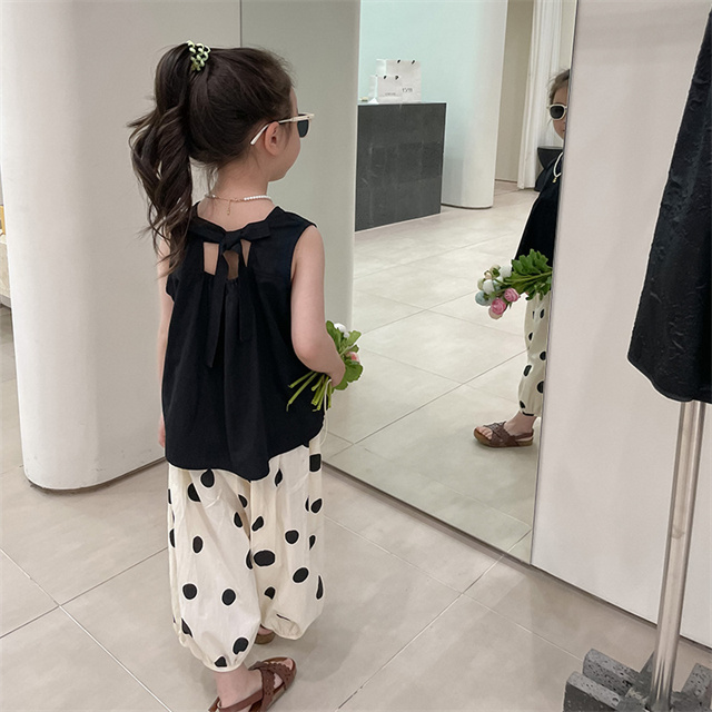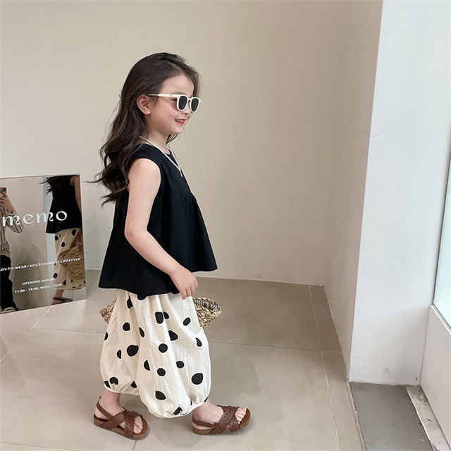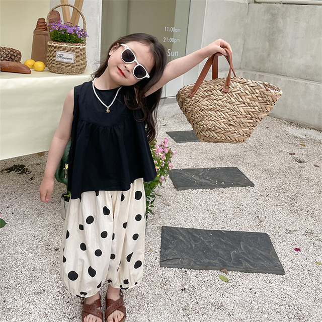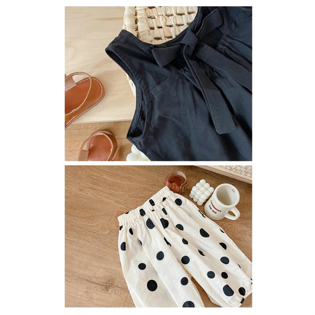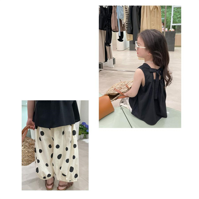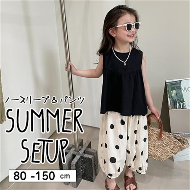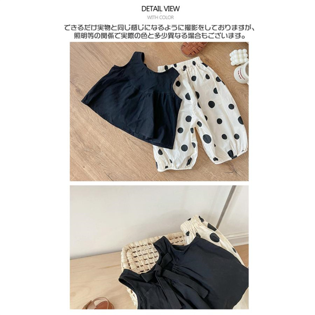 子供服 セットアップ 夏 女の子 水玉 ドット ノースリーブ 袖なし ボリュームパンツ バルーンパンツ 薄手 夏新作