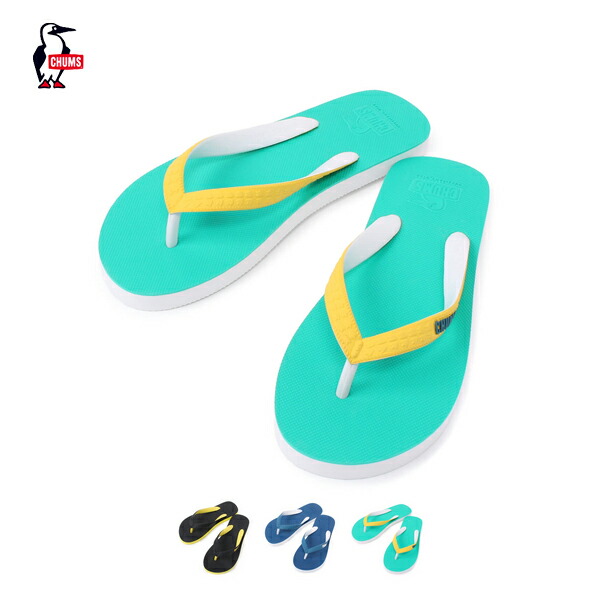 夏の足元といえばコレ、CHUMS定番ビーチサンダル 夏のマストアイテム、ビーチサンダル。 プールサイドやビーチなど、サマーシーズンで大活躍。 鼻緒にはワンポイントのCHUMSロゴ入り。 ソールとアッパーの配色を変えて、さり気ないポイントに。 カジュアルな街着にも映えるデザインなので、お出掛けの度につい履きたくなるひと品。 | ||||||