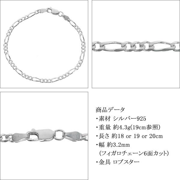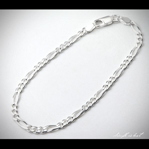シルバー フィガロ チェーン ブレスレット 18〜20cm 6面カット フィガロチェーン シンプル きれいめ シルバーアクセサリー メンズ レディース