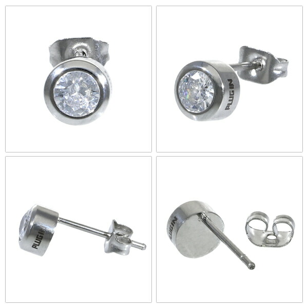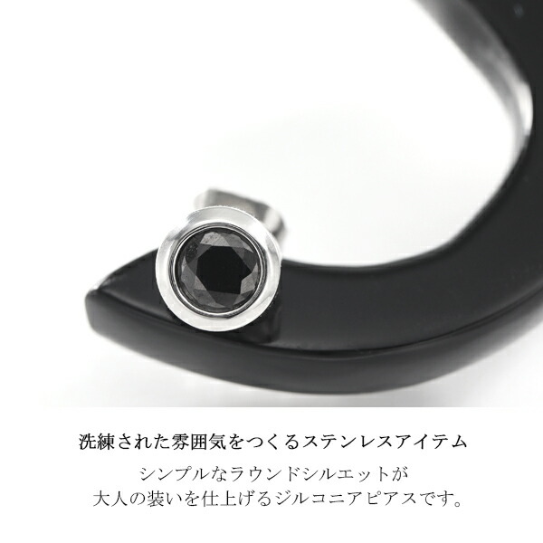 PLUG IN 選べる2カラー ステンレス ラウンド ジルコニア 6mm 一粒ピアス 1P 片耳用 サージカルステンレス ピアス 金属アレルギー アレルギーフリー