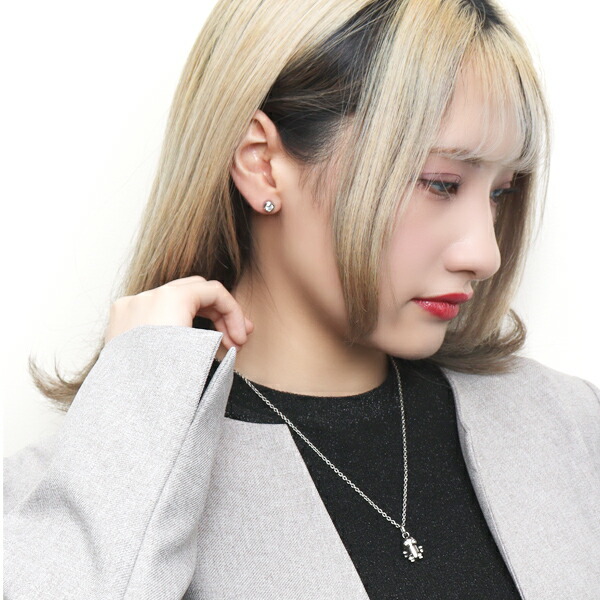 アレルギー性が低い金属のため、金属アレルギーによってシルバーアクセ等を使用できない方にオススメの素材です。 また変色の起こらない金属のため、磨くといったお手入れが不要でとても気軽にお楽しみ頂けます。