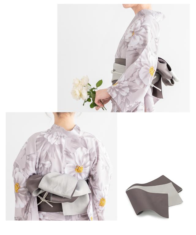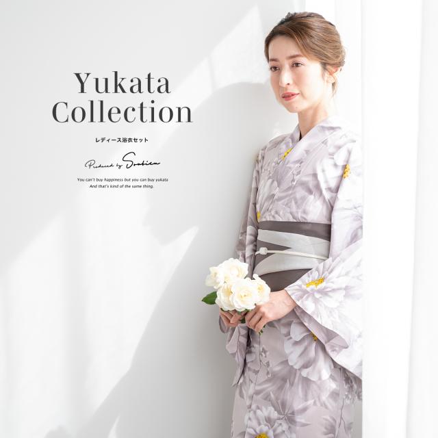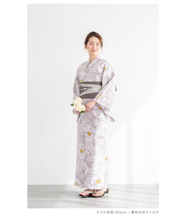 浴衣 セット レディース 浴衣セット 半幅帯 大人 3点セット グレー系 灰色系 白 牡丹 花 大柄 グレー S フリー 30代 40代 50代 ママ 送料無料