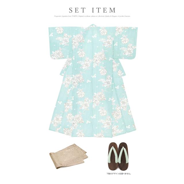 こちらの商品は、浴衣・帯・下駄の3点セットです。セット内容の一部変更や、それに伴う値引きは承っておりません。