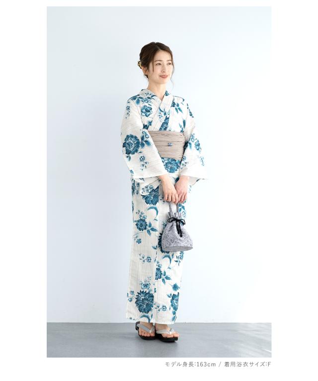 浴衣 セット レディース 浴衣セット 兵児帯 大人 3点セット ホワイト 白系 ネイビー 藍 牡丹 花唐草 雨縞 白茶 S フリー 30代 40代 50代 ママ 送料無料