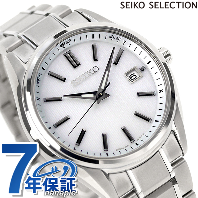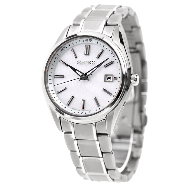 正規品 7年保証キャンペーン 送料無料 セイコーセレクション Sシリーズ チタン製 ソーラー電波 プレミアム 流通限定モデル チタン 日本製 電波ソーラー メンズ 腕時計 SBTM337 SEIKO SELECTION アナログ シルバー ◆上質な立体感あるバンドに象徴される、プレミアムなチタン製ソーラー電波時計が登場。胴横からかん先へとつながる美しい鏡面をもつケースは、鏡面仕上にした内斜面からきらめく光の輝きにより、上質な印象を与えます。中駒に鏡面のラインをもつ、5列構成のバンドは、洗練された美しい輝きを持たせるだけではなく、中留を無垢にすることで、装着感を向上させました。抑揚をつけたストライプパターンのダイヤルと、斜面カットで立体感をもたせたインデックスにより、高級感を強調しました。針、インデックスにはルミブライトをつけることで、夜間も含めた視認性も確保しています。 発売日:2023年5月発売